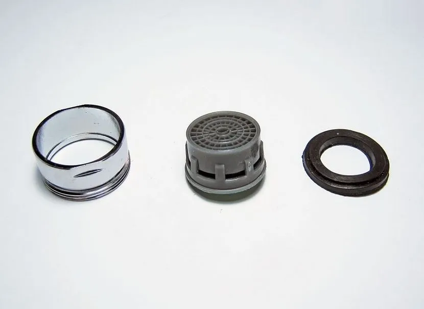 При покупке смесителя или отдельного аэратора важно обратить внимание на материалы, из которого изготовлена насадка. Аэратор состоит из корпуса, сеточных фильтров и резиновой прокладки. Корпус может быть металлический или из пластика, причем последний вариант более дешевый, зато недолговечный и не выдерживает сильного напора водопроводной воды