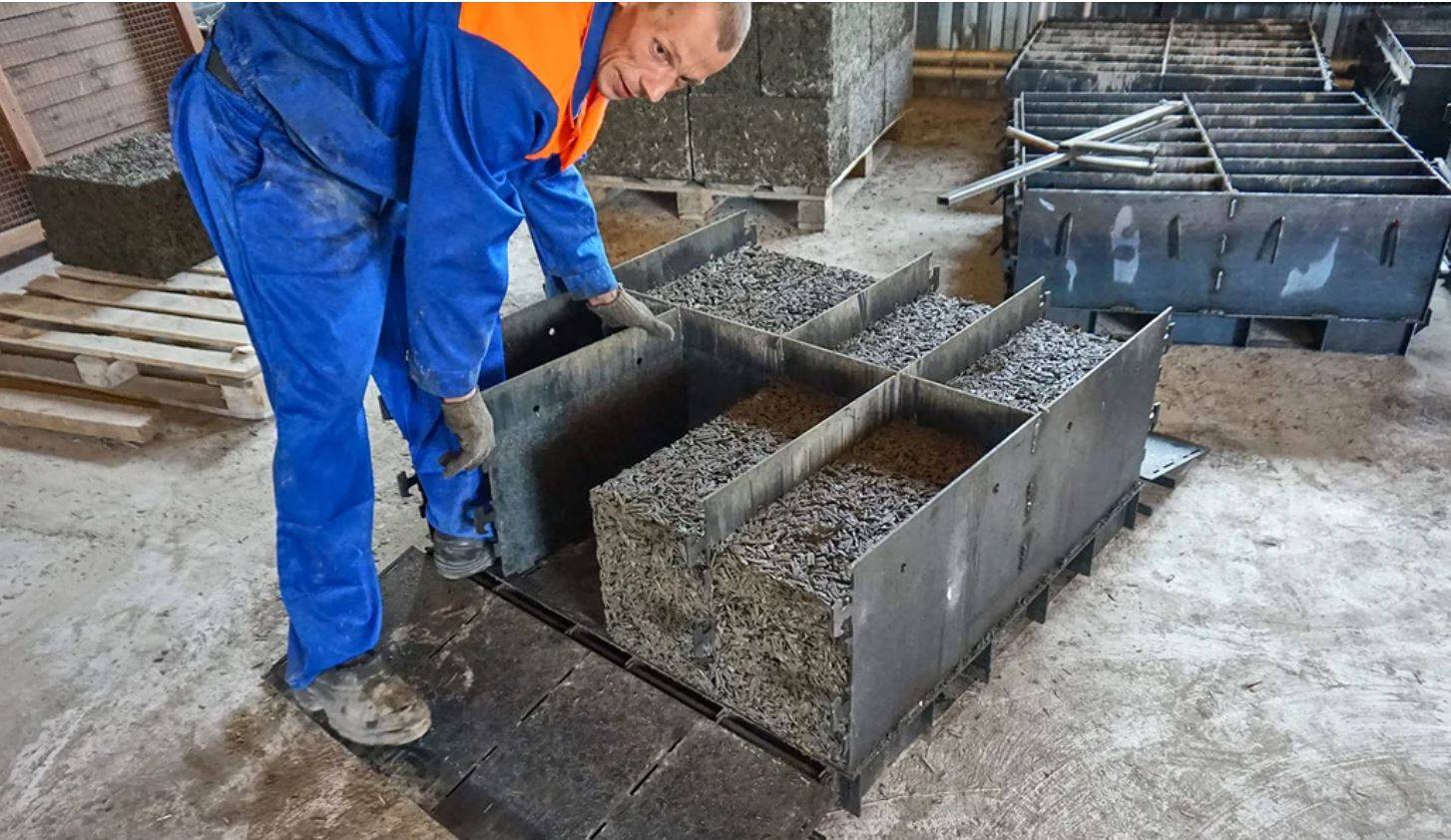 - Формовки. Необходимое, точно выверенное количество щепы и цемента смешиваются и формируются в блоки.