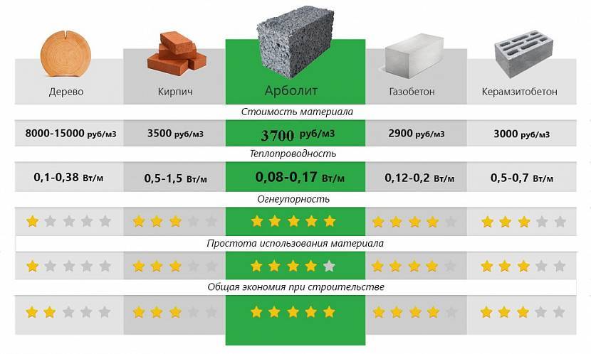 Сравнительная характеристика популярных строительных материаловИсточник kafmt.ru