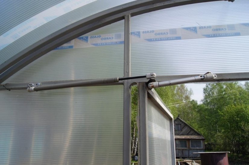 Обычно такие постройки продаются в готовом виде, и на местности их попросту нужно собрать. Стены и потолки парника из поликарбоната уже имеют готовые окна для проветривания. Их можно открывать вручную для проветривания, но если теплица большая по размеру, лучше ее автоматизировать с установкой одной из известных систем.