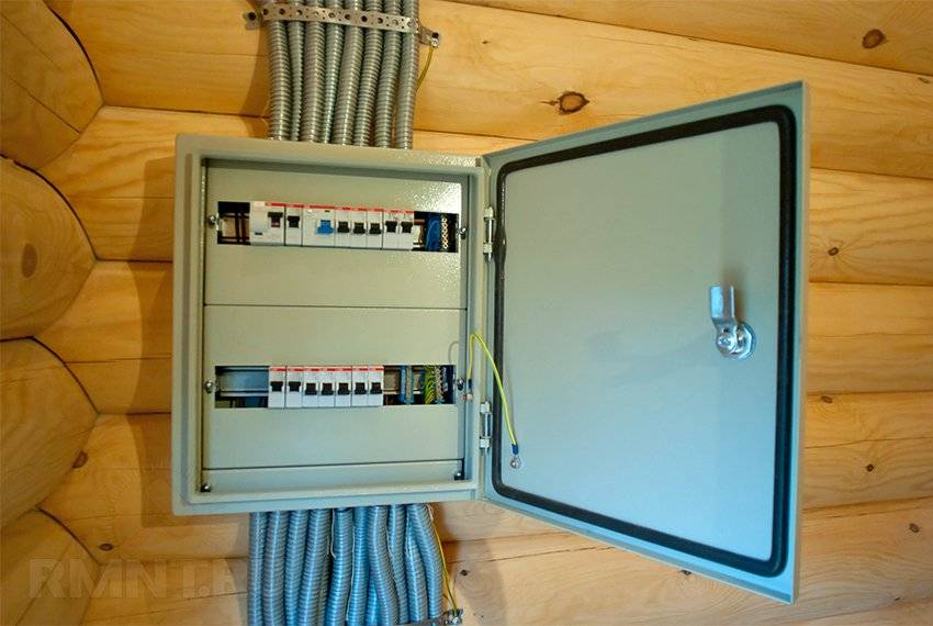 Для обеспечения пожарной безопасности в баню устанавливают отдельный щиток с регуляторами. По причине периодического использования постройки, высоких температур и влажности проводить электричество необходимо с соблюдением нормативов.