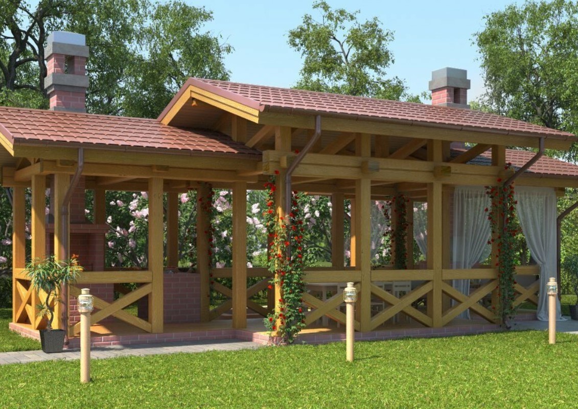- если владельцем загородного ома планируется сделать открытый тип деревянной беседки, допускается возможность высадки на максимально близком расстоянии декоративных кустов либо иные многочисленные растения, которые смогут спустя определенное время сформировать искусственную тень;