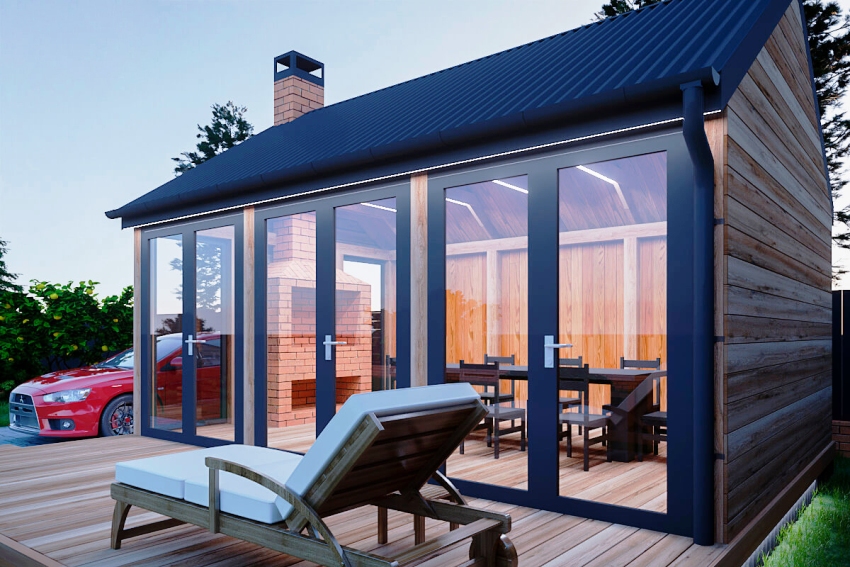 - То, насколько беседка близко будет располагаться к дому – это дело хозяина. Но стоит отметить, что, если строение примыкает к основным стенам, оно не должно по архитектуре отличаться;