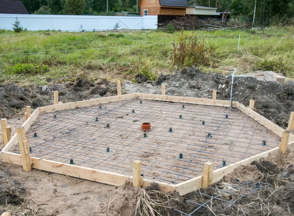 Для тяжелой полуоткрытой или закрытой постройки возводят плитный фундамент. Поэтапно его выполняют так: