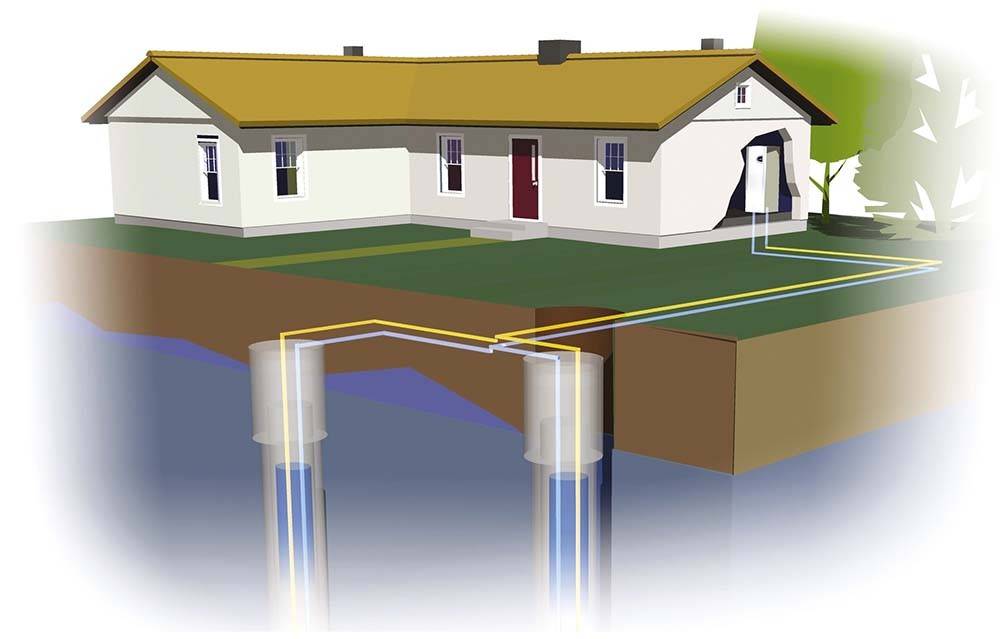 Температура грунта на глубине всегда выше, чем температура окружающей среды. Геотермальная система использует тепло земли и распространяет его по дому. Устройство системы представляет собой абсорбирующие тепло из почвы водопровод, который передает температуру тепловому насосу, последний передает тепло непосредственно на теплообменник в отопительную систему помещения. Системы, использующие геотермальное отопление, делятся на два типа: использующие горизонтальный коллектор и вертикальный коллектор. Горизонтальный коллектор очень просто монтируется, легок в обслуживании, но обладает рядом серьезных недостатков: