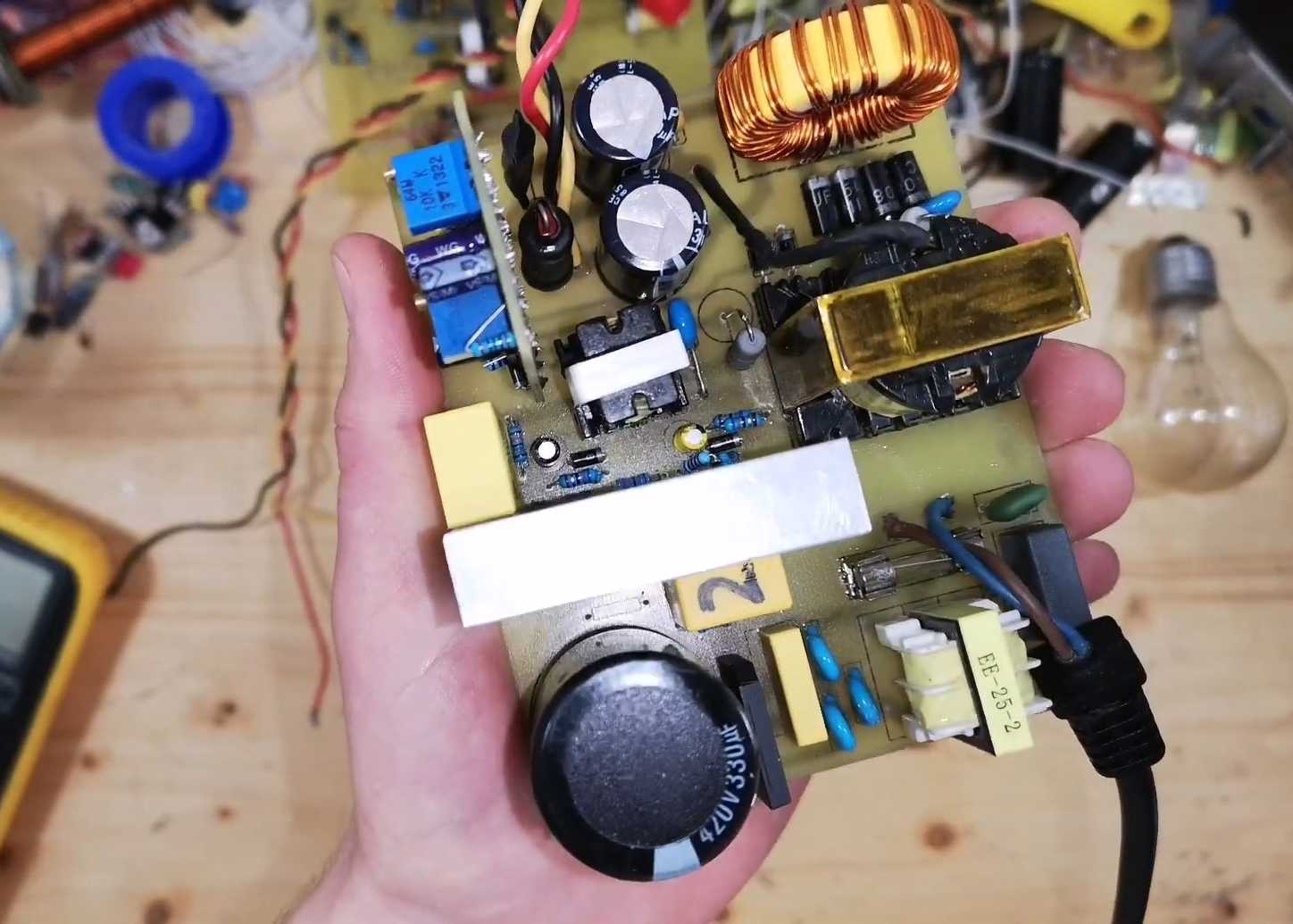 Разберите вышедшую из строя ртутную лампу мощностью 20 Вт (подходит для драйвера на 10 Вт). В таком случае гарантируется, что дроссель выдержит оказываемую нагрузку. С увеличением потребностей мощности для сетевого драйвера придется выбирать более мощную экономку или вместо дросселя воспользоваться аналогом с огромным сердечником.
