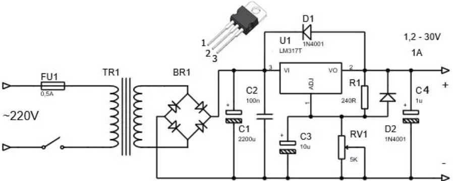 Микросхема lm317 – достойный стабилизатор вольтажа. Заявленная пульсация напряжения на ее выходе составляет 0,1%. К тому же данная микросхема может обеспечить на выходе ток 1,5 А.