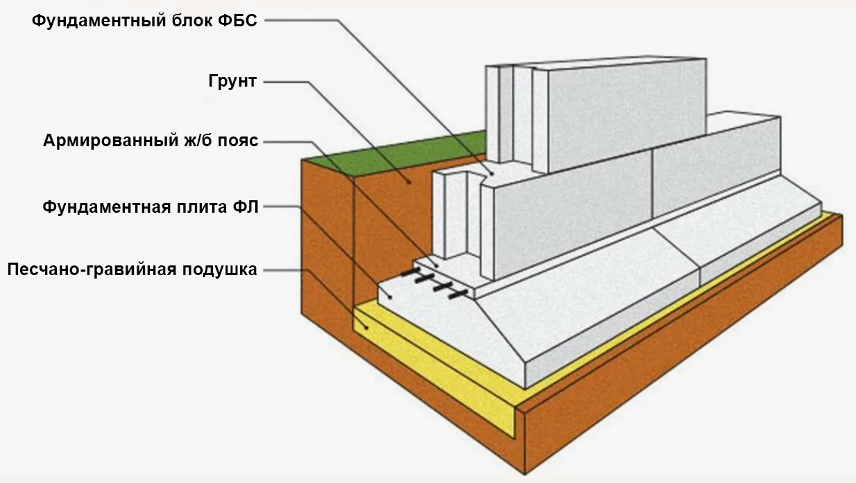 Схематический вид фундамента из блоков ФБС Фото из открытых источников с изменениями ecostroyhouse.ru