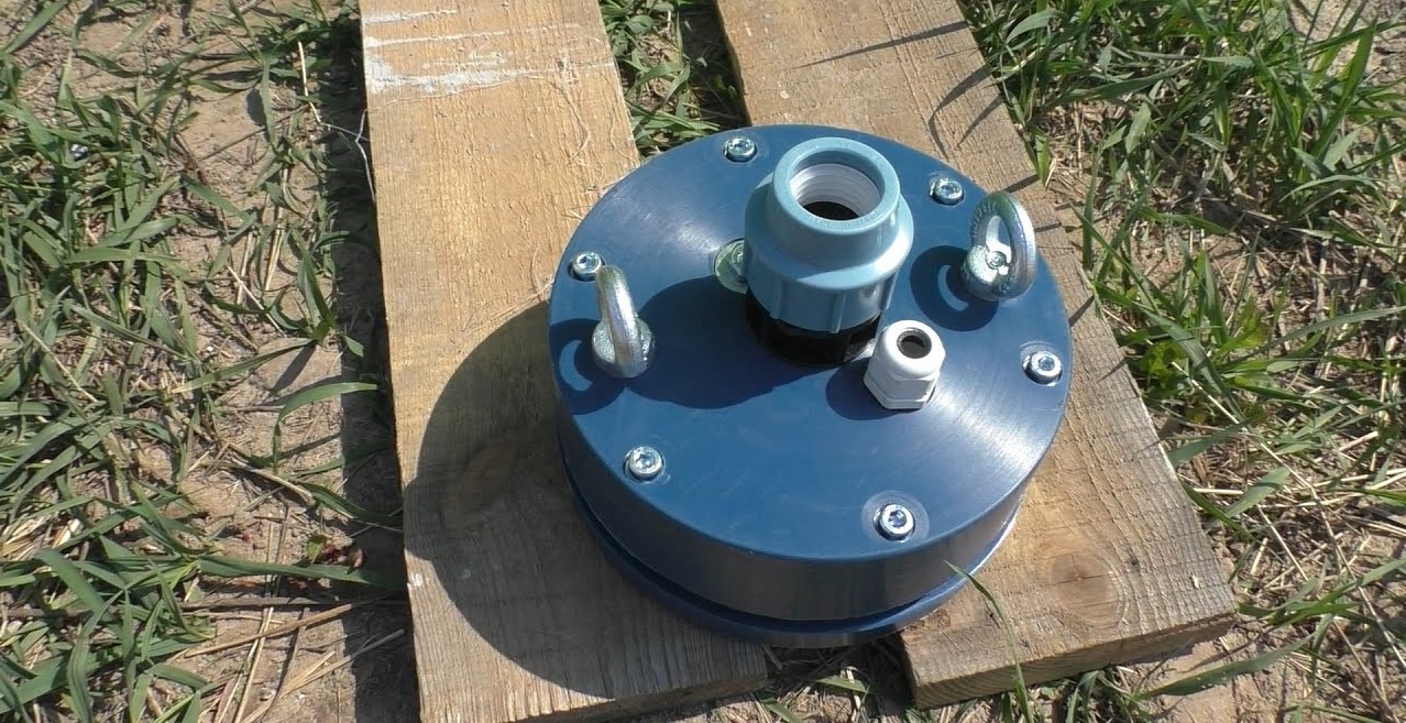 Сверху обсадную трубу следует накрыть оголовком. По сути это просто герметичная крышка с уплотнительными резиновыми прокладками, на которой закреплены насос и водопроводная труба. Однако, это несложное устройство создаёт условия для понижения воздушного давления внутри обсадной трубы – частичный вакуум. Из-за этого уровень воды в колодце и, соответственно, его дебит увеличивается.