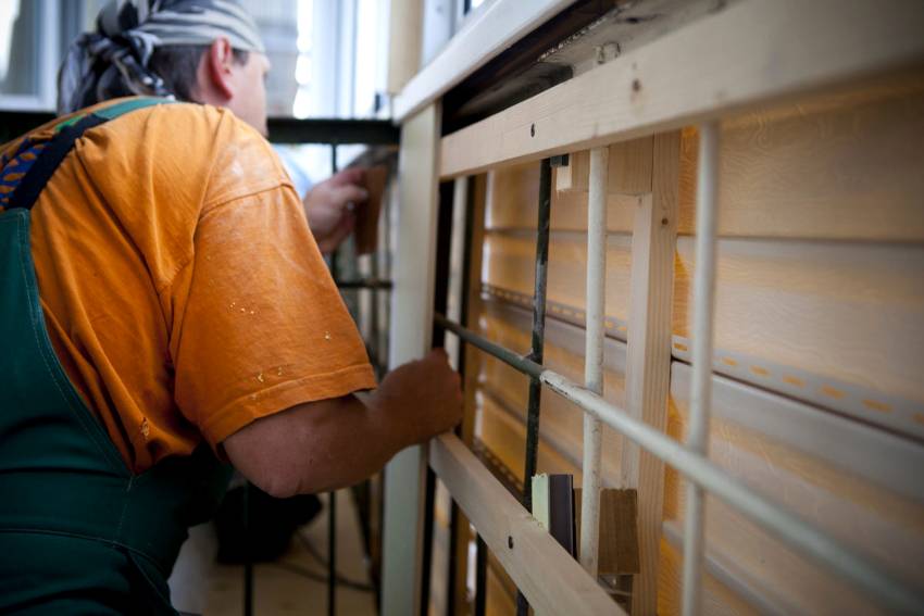 Как и в случае с обшивкой лоджий вагонкой, сайдинг устанавливается на заранее подготовленный каркас или же обрешетку. Фиксация каркаса выполняется с использованием дюбелей. Далее рекомендуется заполнить пространство между рейками обрешетки гидроизоляционным материалом.