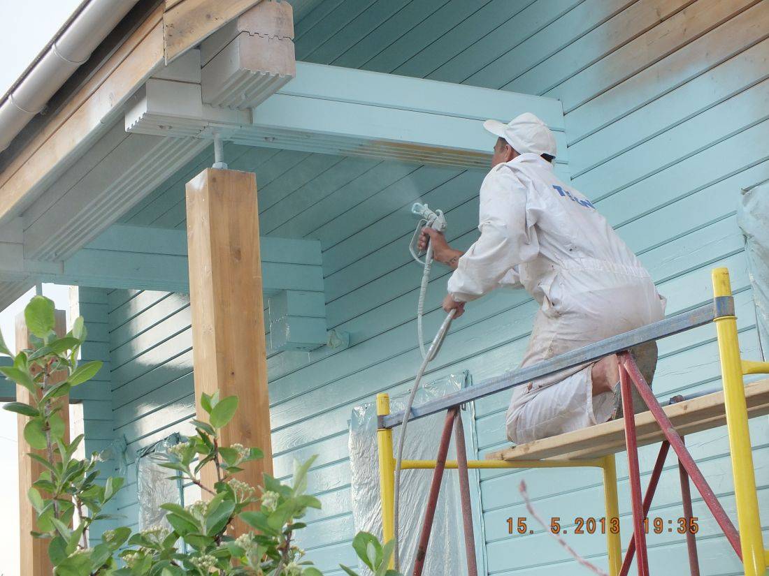 Данным работам предшествует этап подготовки с последовательной очисткой поверхностей от грязи или пыли, антикоррозийной обработкой участков с металлическими крепежами, сушкой и проверкой уровня влажности древесины, грунтованием с обязательной обработкой торцов. К окрашиванию деревянного дома приступают лишь при уверенности в достаточном качестве подготовки и сухости рабочих поверхностей.