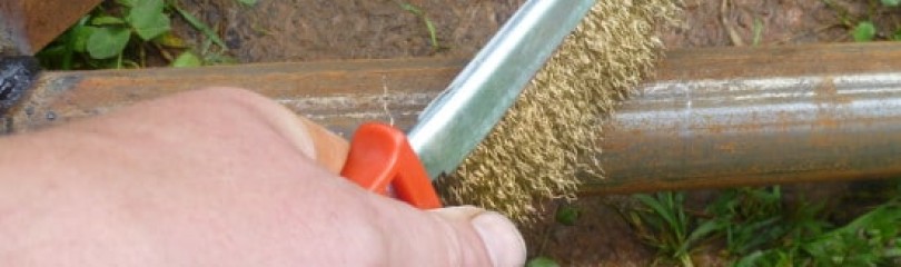 Для обработки металлических опор потребуется щетка из проволоки и небольшого размера кисть. Этапы работы: