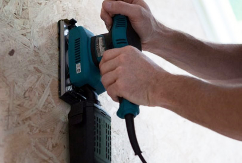 Шлифовать поверхность нужно, чтобы убрать небольшие неровности и улучшить текстуру. Действие лучше выполнять с помощью шлифовальной машинки, так как требуется обработать всю площадь. Особенно в шлифовке нуждаются плиты и ОСБ-4 и ОСБ-3;