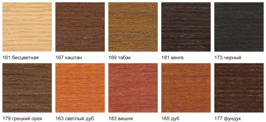 Морилка разных оттенков поможет подчеркнуть текстуру дерева, при этом состав защитит плиту от разрушения. Возможность выбора цвета обусловлена разнообразием морилок на рынке стройматериалов: