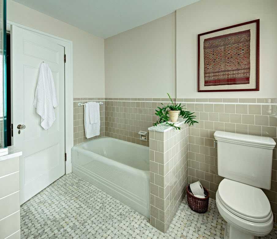 Сочетание кафеля и окрашенных стен — наиболее практичный вариант