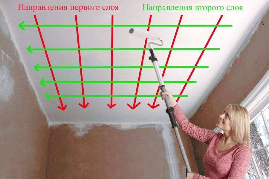 Если имеются неровности и есть необходимость более плотного нанесения первого слоя, нужно воспользоваться кистью, а второй слой уже можно наносить валиком.