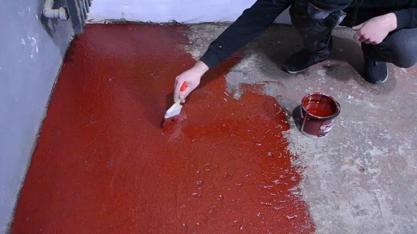 - Покрывают пол раствором, используя широкую кисть с жёсткой щетиной.