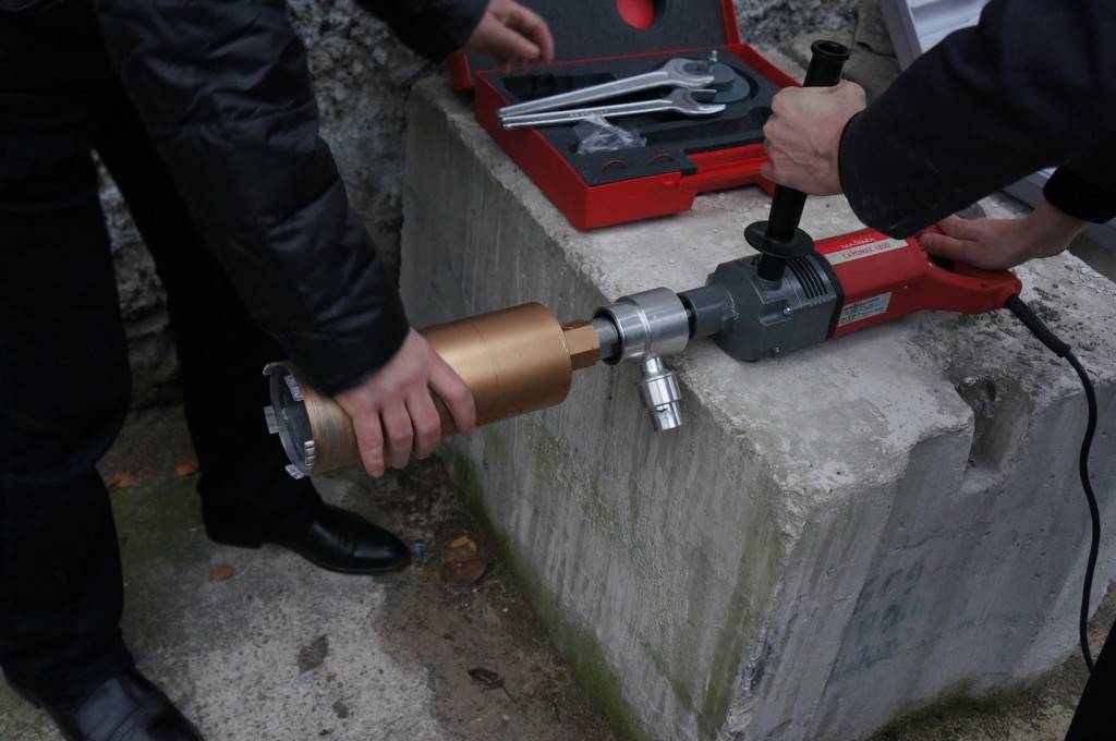 Все оборудование очень компактное и позволяет высверливать отверстия, как с удерживающей стойки, так и в ручном режиме. При этом нагрузка на перекрытия значительно меньше, чем при обычном «влажном» бурении.