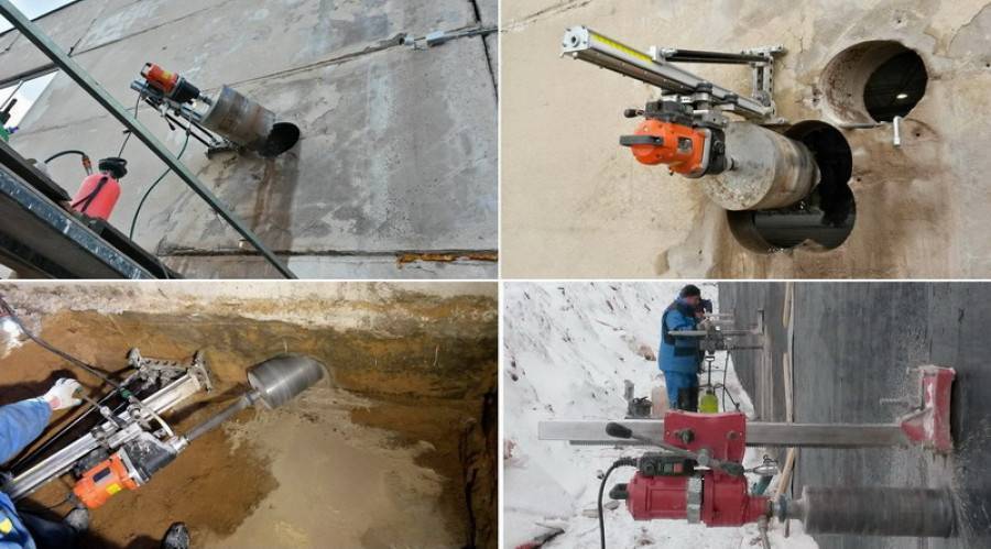 Различают два основных вида бурения: сухое алмазное бурение без воды и влажное бурение