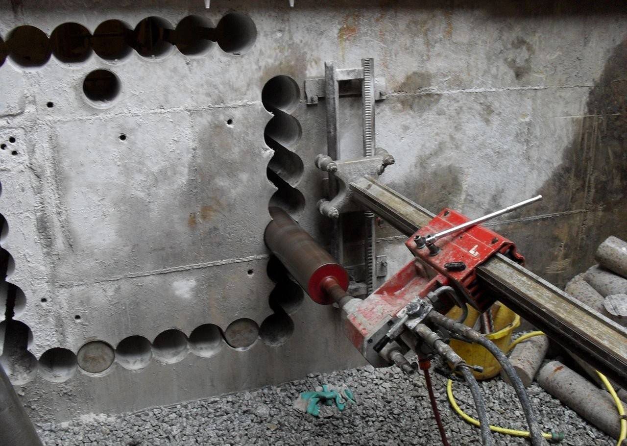 Наиболее уместно использовать оборудование для алмазного бурения бетона на стадии капитального строительства или ремонта. С его помощью можно максимально быстро и эффективно просверлить отверстия для прокладки следующих коммуникаций: