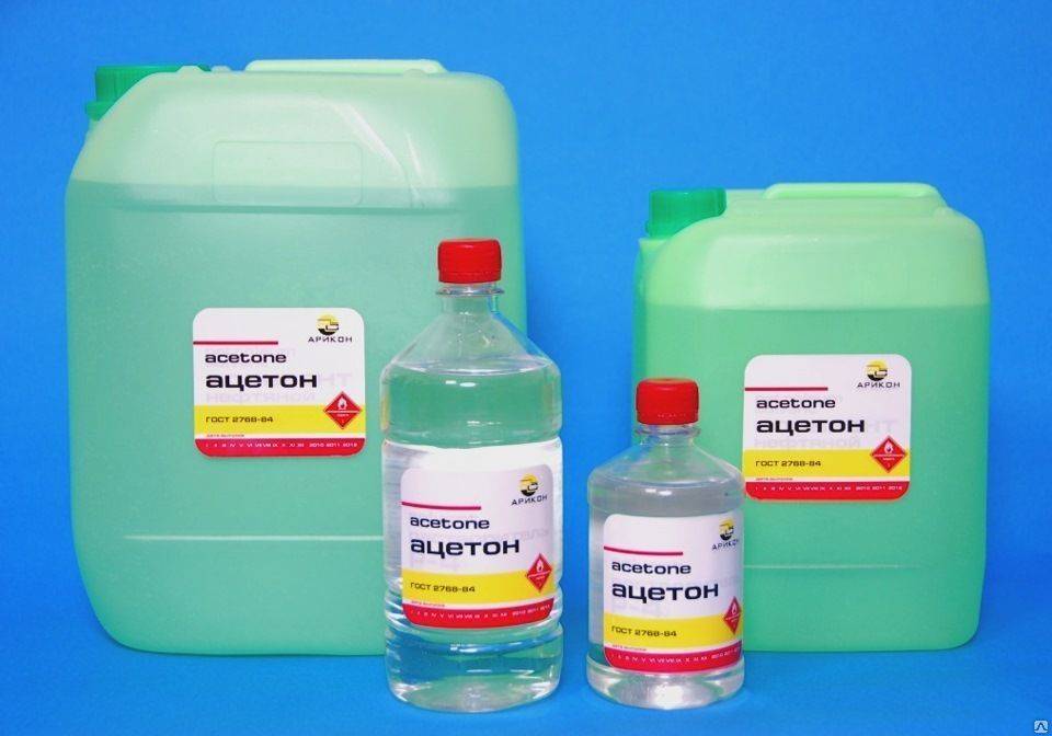 Удалить загрязнение можно ацетоном. Перед применением его наносят на небольшой участок. Если поверхность осталась без изменений, можно наносить ацетон на весь шов. Ацетон более агрессивен, чем уайт-спирит и имеет сильный запах. Жидкость наносят на шов и ждут 15-20 минут, пока он не размягчится и не потеряет форму. Остатки следует убрать тканью.