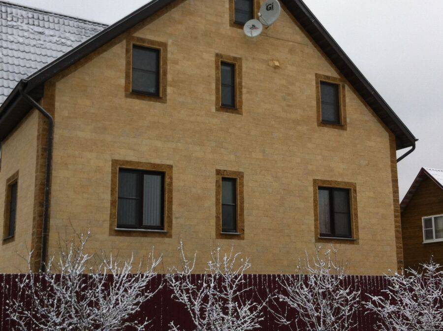 Экстерьер дома, облицованного фасадной плиткой из бетона