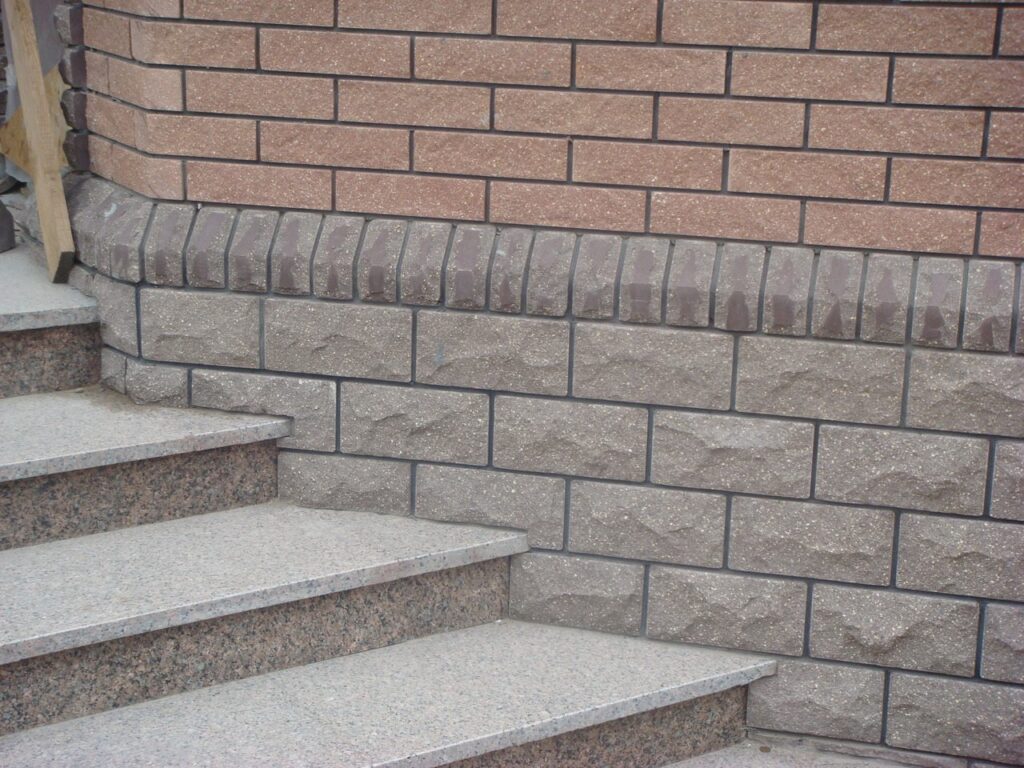 Толщина отделки должна быть меньше толщины основной стены. Поэтому оптимальным вариантом будет гранитная плитка с толщиной не более 40 мм. Солиднее будет выглядеть гранитная плитка пиленая, лощеная или бучардированная. Она выдержит любую непогоду и сохранит свои характеристики прочности.