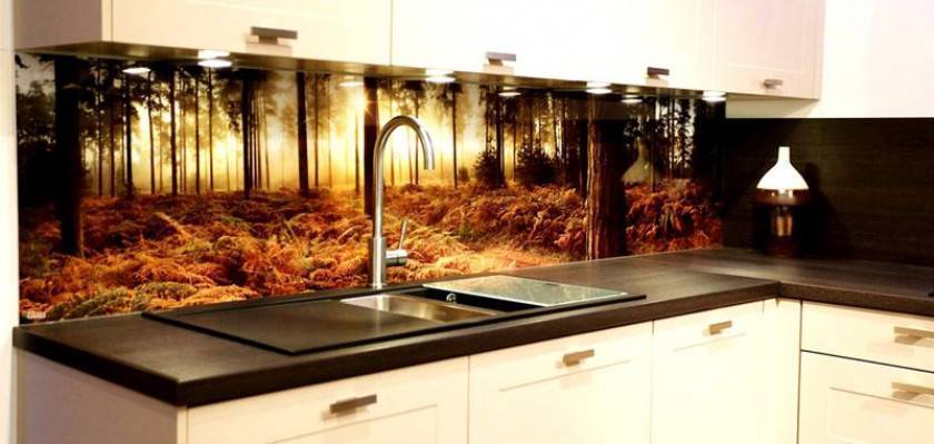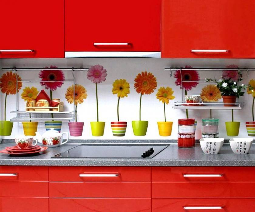 Тоже новое слово в кухонном дизайне. Элемент отделки очень выручит тех, кто не готов позволить себе такую роскошь как наливные полы или обшивка стен панелями со стереоизображением.
