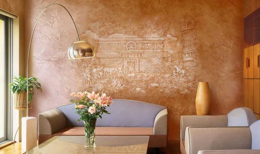 - Особая штукатурка наносится в несколько слоев при оформлении стен театров, гостиниц, музеев.
