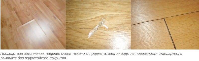 - Если вдруг произойдет потоп в квартире, например, внезапно лопнет труба или просто, уходя на работу, вы забудете закрыть кран, то помимо замены сантехники, придется менять и весь ламинат полностью.