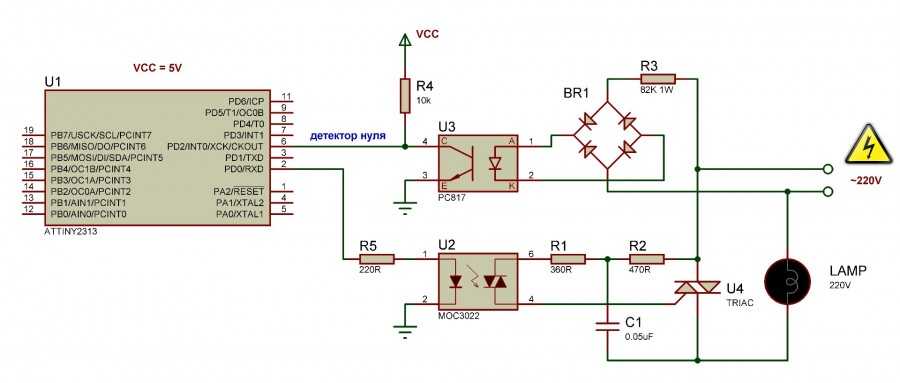 - выходное напряжение имеет нелинейную зависимость от величины сопротивления резистора в схеме электронного диммера;