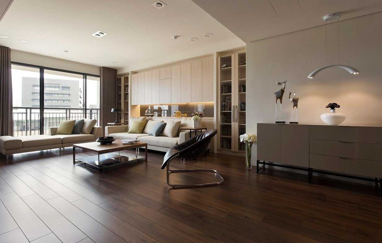 Мебельный гарнитур может удачно смотреться в сочетании с темным полом независимо от того, будет ли он: