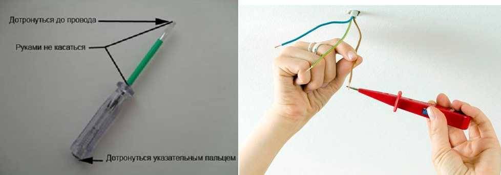 Определение фазного провода при помощи индикаторной отвертки