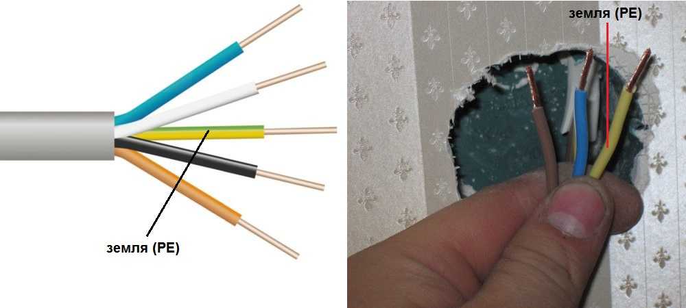 В некоторых случаях, в кабеле могут быть только желтые или ярко-зеленые проводники. В таком случае «земля» имеет именно такой цвет. Такими же цветами она отображается на схемах — чаще ярко-зеленым, но может быть и желтым. Подписывается на схемах или на аппаратуре «земля» латинскими (английскими) буквами PE. Так же маркируются и контакты, к которым «земляной» провод надо подключать.