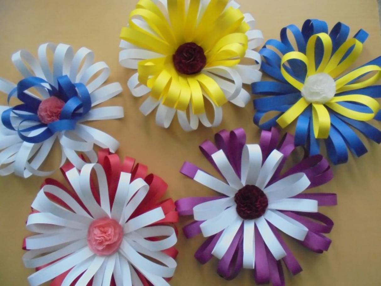 Здравствуйте, уважаемые коллеги и гости МААМ! Предлагаю вашему вниманию результат своего эксперимента по изготовлению цветов из бумаги. Любое торжество в детском саду требует дополнительного украшения, атрибутов. Предложенные мною варианты помогут быстро, недорого приготовить украшение на стену, а может (если приделать резиночку)-цветок на руку для девочки, исполняющая танец с цветком, или., но это уже ваша фантазия!