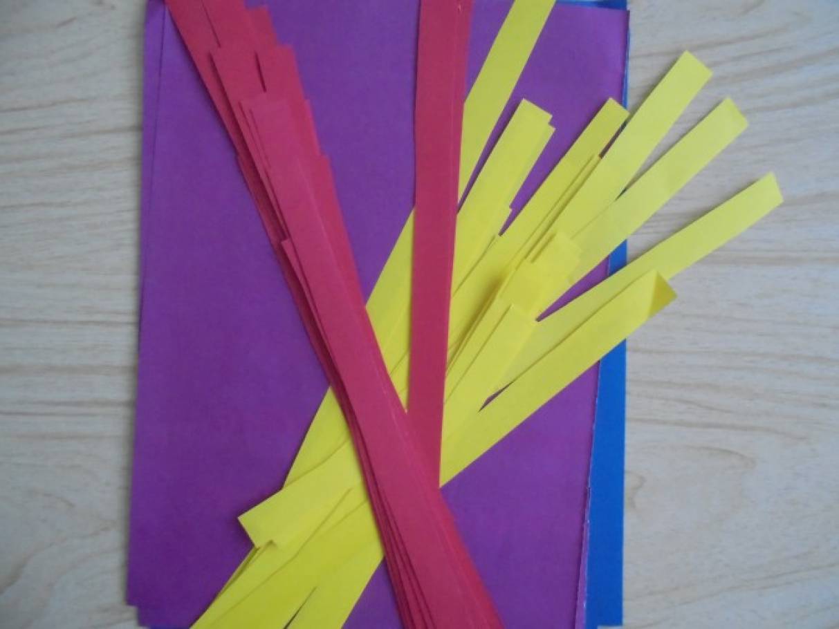 - Выбираем понравившийся цвет, нарезаем три полоски высотой 2,5 см, длиной около 7-8 см.