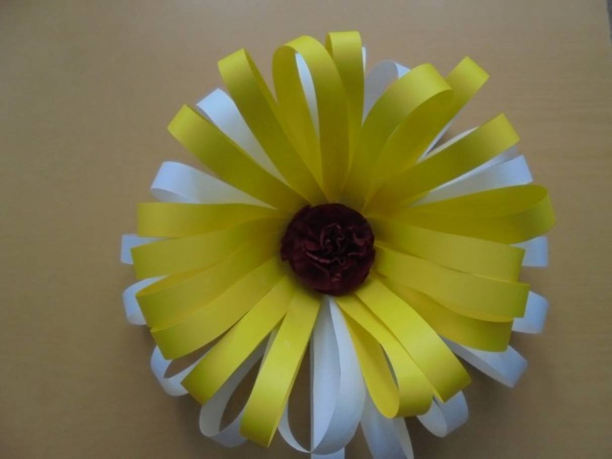 Вот такие цветы из бумаги создаются при помощи подручных средств.