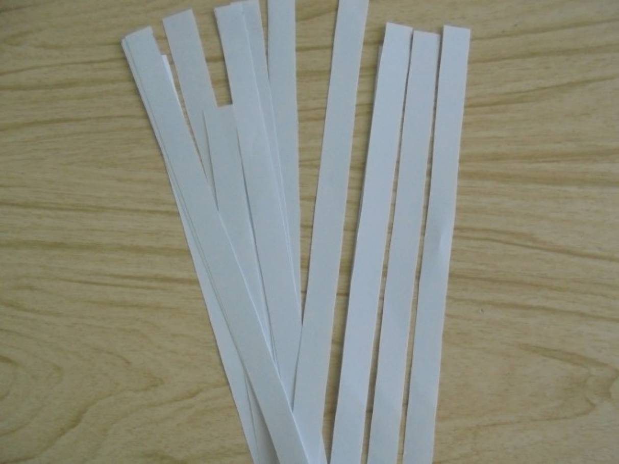 Работу начнём с нарезания бумаги полосками шириной 2-3 см (можно попробовать и шире). Свой эксперимент я начинала с белой бумаги,