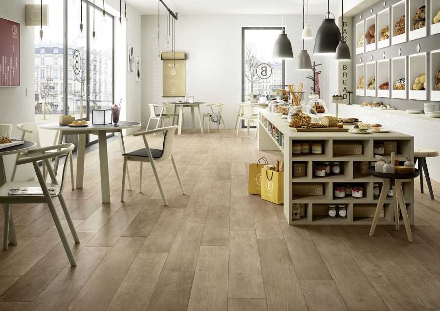 Выбор напольной плитки под дерево подчиняется предпочтениям покупателя и выбранной идее дизайна. По химической устойчивости предпочтительней выбирать для пола плитку А и В классов. В первом случае поверхность не меняется под воздействием химикатов. Во втором изменения будут незначительными.