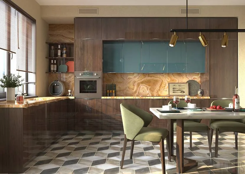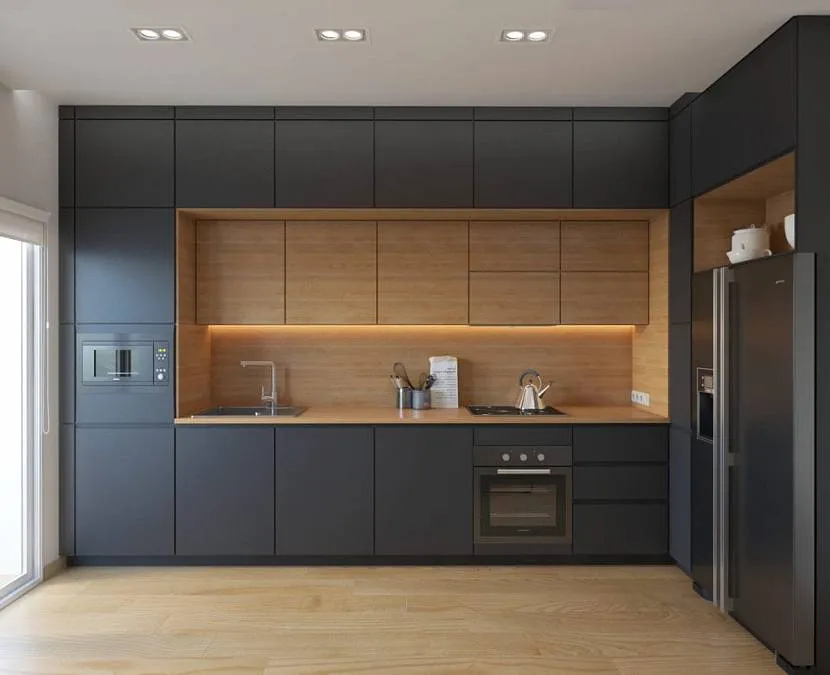 Дизайн кухни под дерево в современном стиле