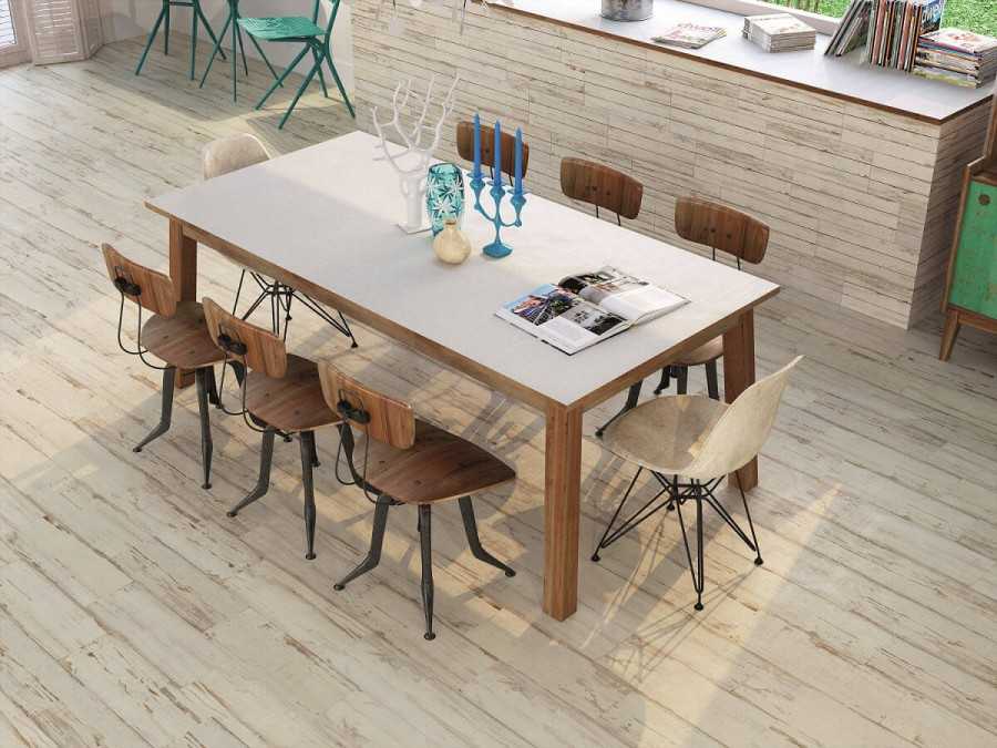 Керамическая плитка с имитацией древесной поверхности изготавливается на основе глины. В качестве дополнительных компонентов используются материал из белого кварца и полевые шпаты. Производят следующие виды декоративного покрытия с эффектом древесины: