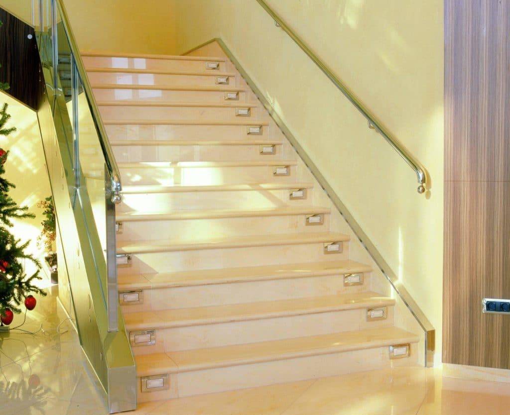 - Полированная плита с зеркальностью выше 80%. Из этого материала можно смело выкладывать лестницу внутри помещения.