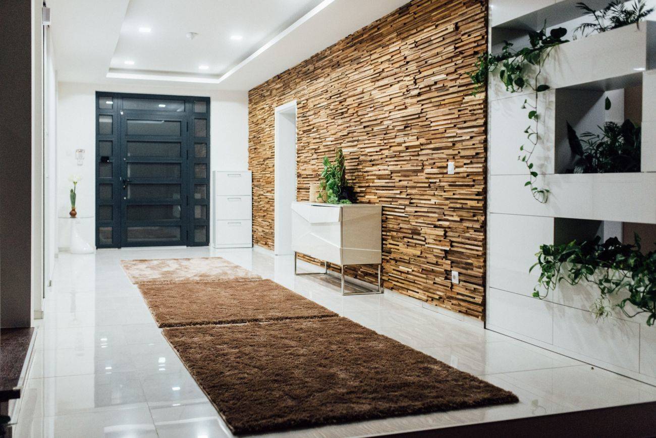 - прекрасная сочетаемость с иными видами отделки – плиткой, кирпичом, камнем, обоями, штукатуркой;
