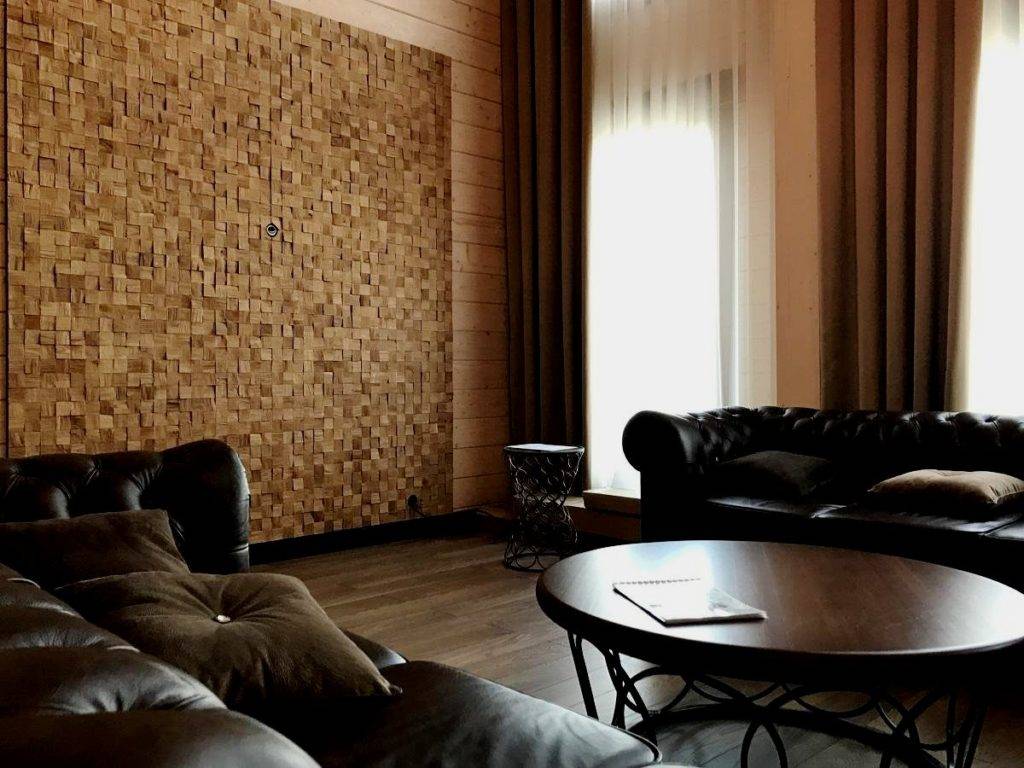 Этот вид отделки представляет собой кусочки дерева различных размеров и форм. Преимущества мозаики: