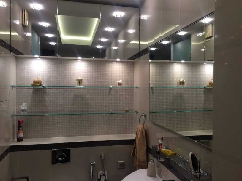 Особенно привлекательно смотрятся стеклянные полочки с подсветкой, которые могут стать изюминкой интерьера ванной