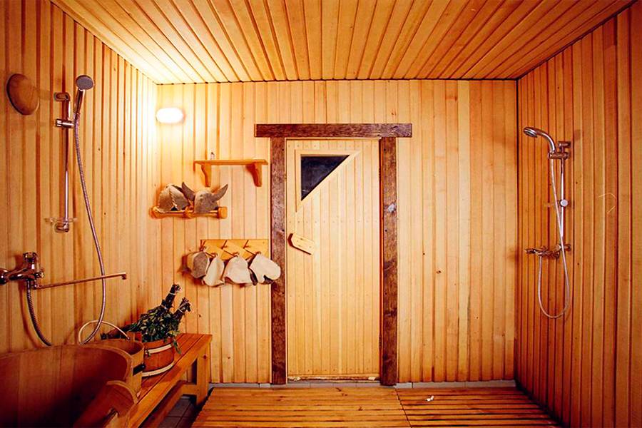 Что лучше использовать для декора внутренних помещений бани? Для отделки применяется дерево, которое не нагревается, не деформируется и не гниет.