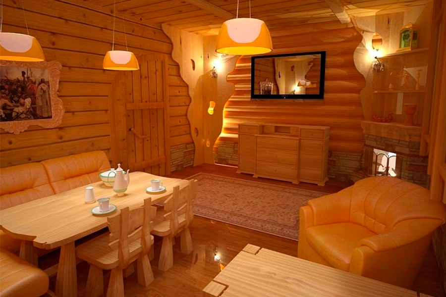 Интерьер бревенчатой бани