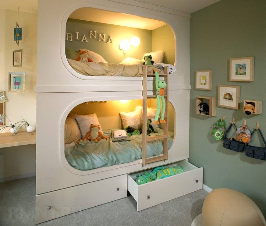 А теперь несколько дизайнерских идей, способных вдохновить на создание оригинальной двухъярусной кровати