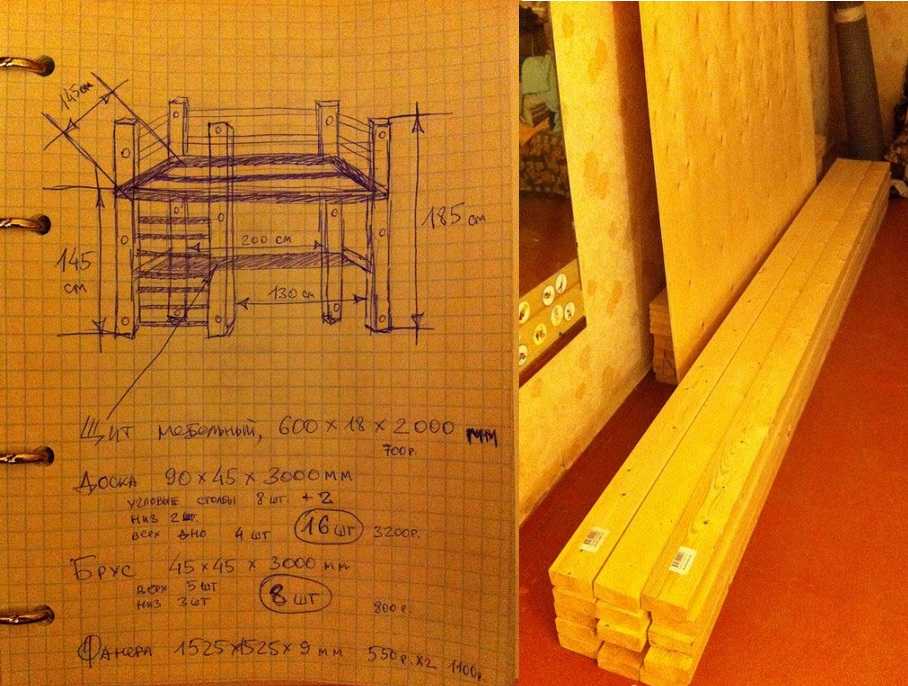 Подготовка к строительству двухъярусной кровати начинается с составления чертежа