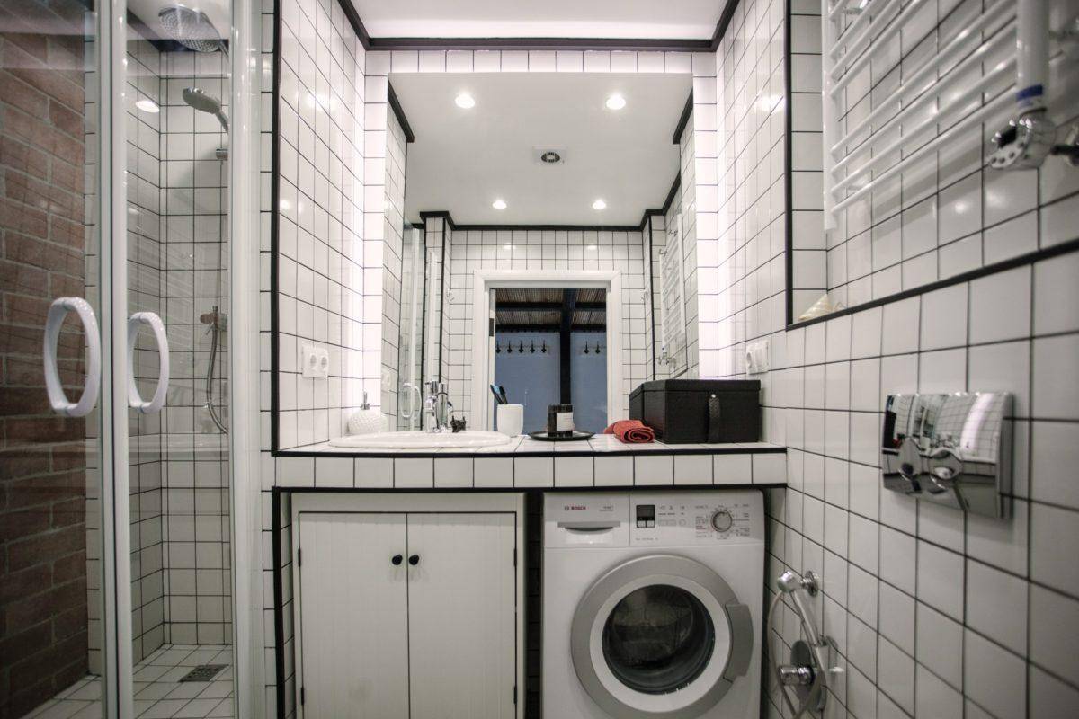 Стиральную машинку вовсе не обязательно ставить в ванной комнате. Найти для нее место можно на кухне, в коридоре или кладовке. При наличии отдельного туалета иногда стиральную машинку ставят там.